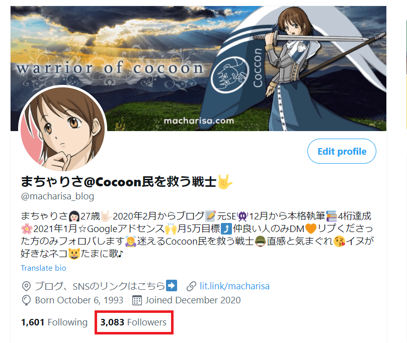 2021年7月1日現在のフォロワーさんは、「3,083名」です!