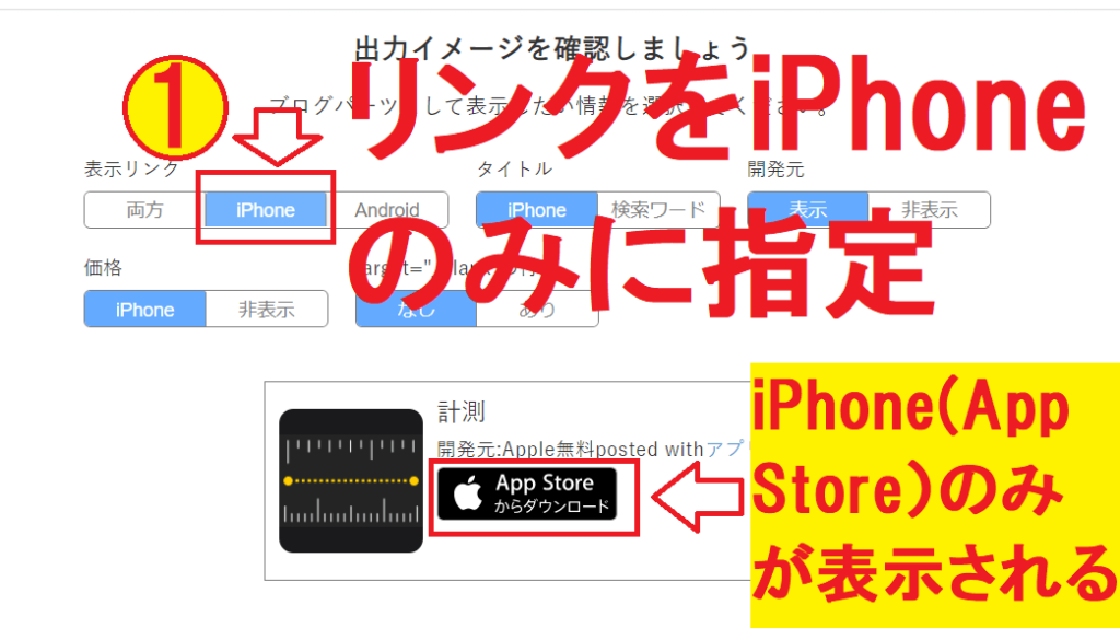 iPhone、Androidいずれかのみのアプリである場合、表示したい方を設定できます。