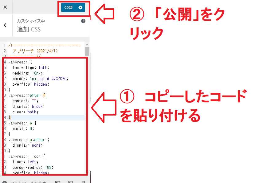 CSSコードを貼り付ける