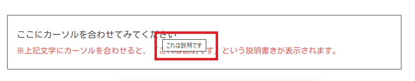 ※上記文字にカーソルを合わせると、「これは説明です」という説明書きが表示されます。
