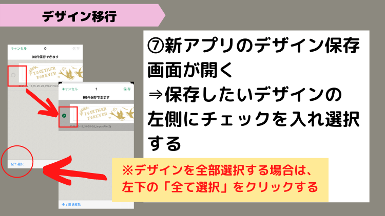 ⑤ 保存したいデザインを選択