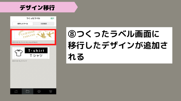 ② 「つくったラベル」を開く