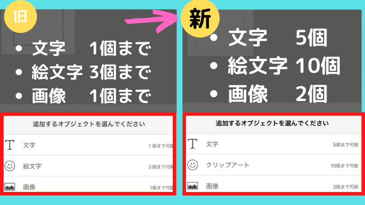 | 絵文字(クリップアート) | 3個 | 10個 |