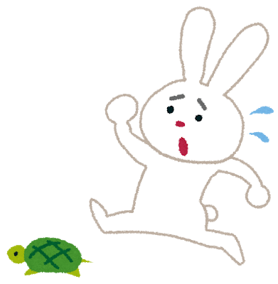 うさぎのようにハイペースでやろうとしなくても、カメのようにできる範囲で着実にやっていくことが大切。