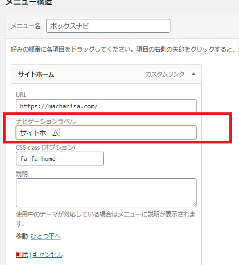 ![[表示オプション▼]を選択し、[カスタムリンク]と[CSSクラス]にチェックを入れる](https://macharisa.com/wp-content/uploads/2021/03/アイコンボックス4_表示オプション3.png)