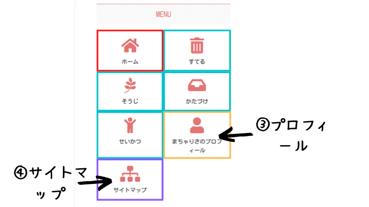 今回は、「プロフィール」と「サイトマップ」を追加します。こちらです。