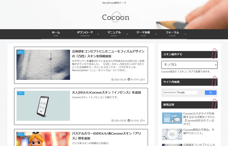 今回の記事では、Cocoonユーザ向けに「スキン」の特徴と使用ユーザさんの評判について紹介します。
