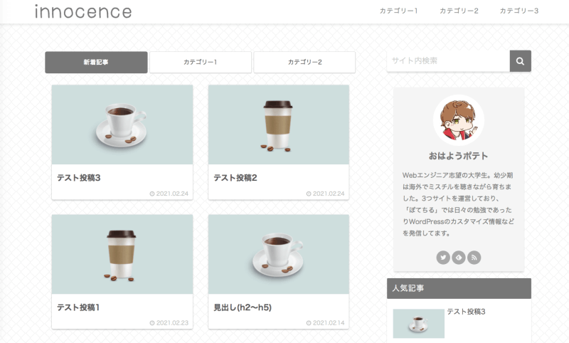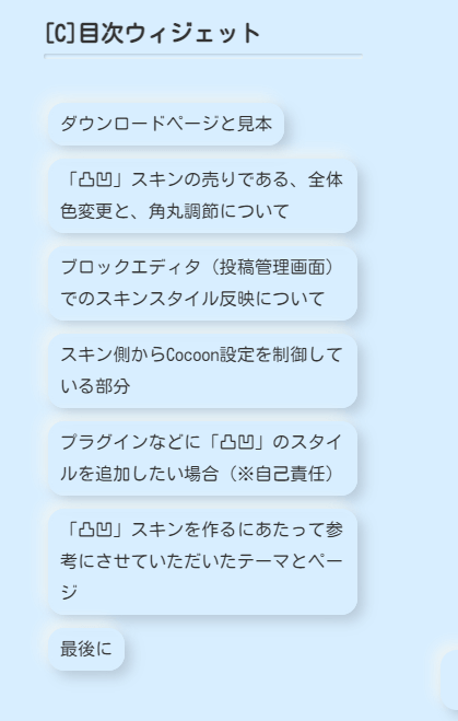 Cocoonの中でも、デザインに独自性を出したい方におすすめです。色や角の丸さも設定で調節できるデザインで、カスタマイズの幅が広がりますね!