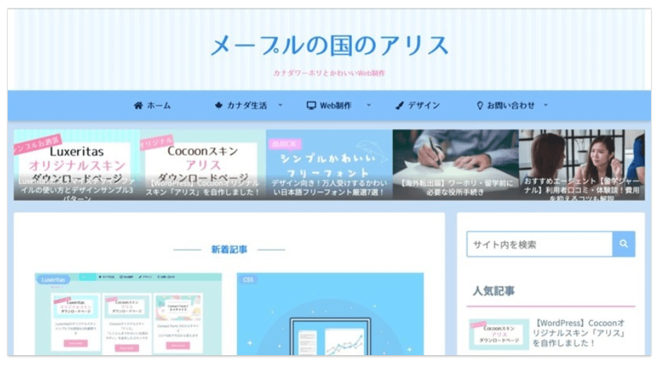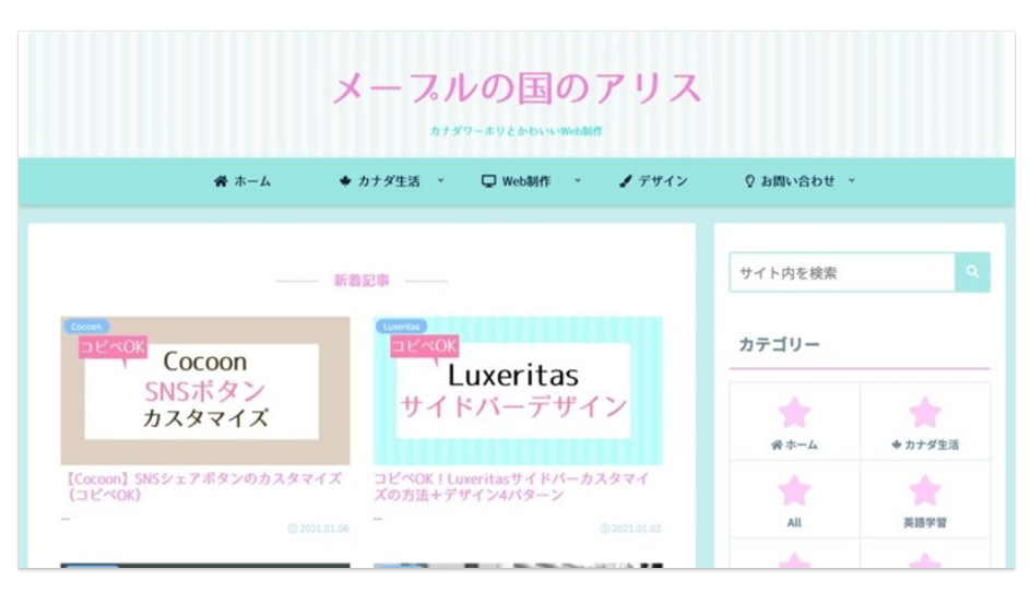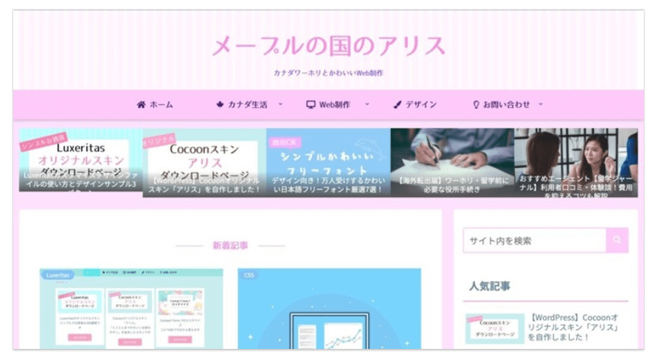 ▼自分好みにカスタマイズして、有料サイトのようなすてきなページにしています。