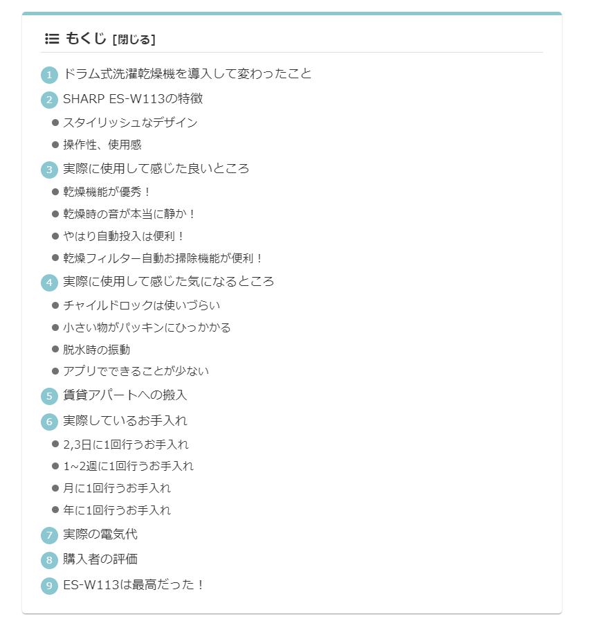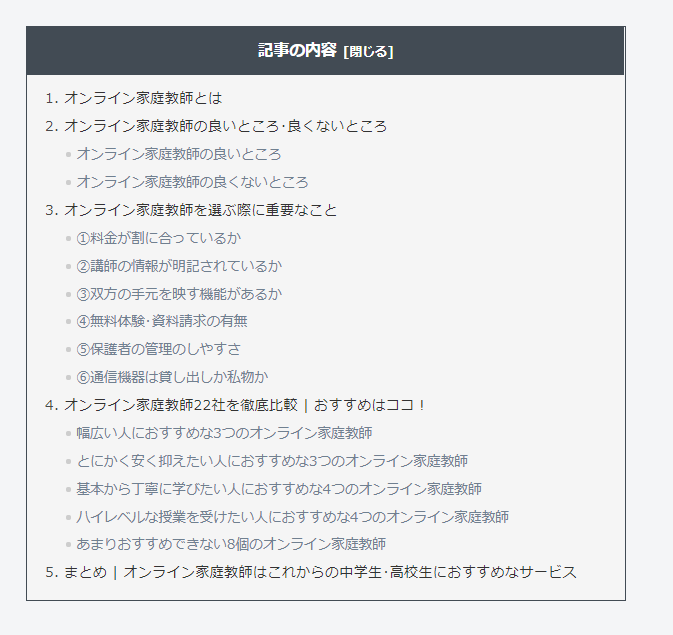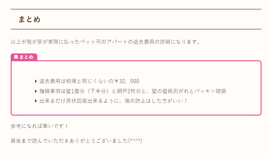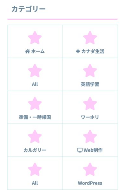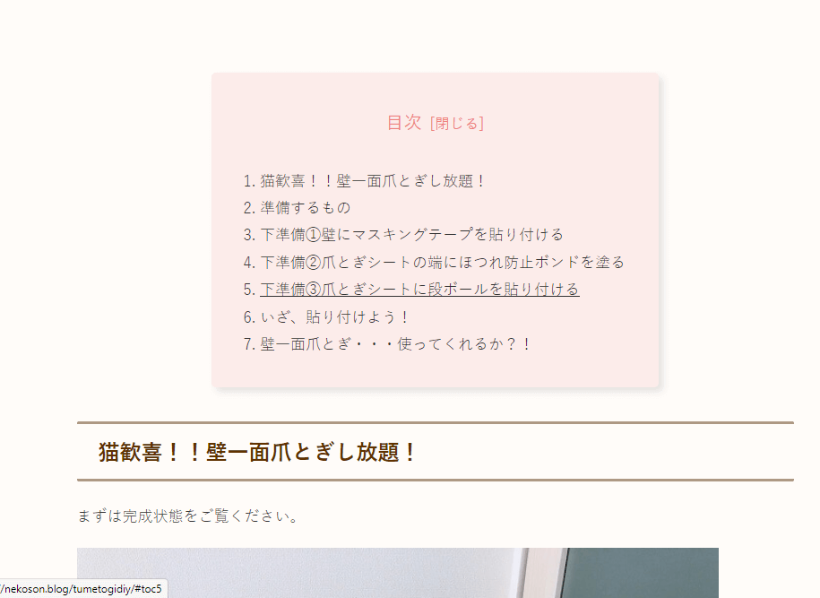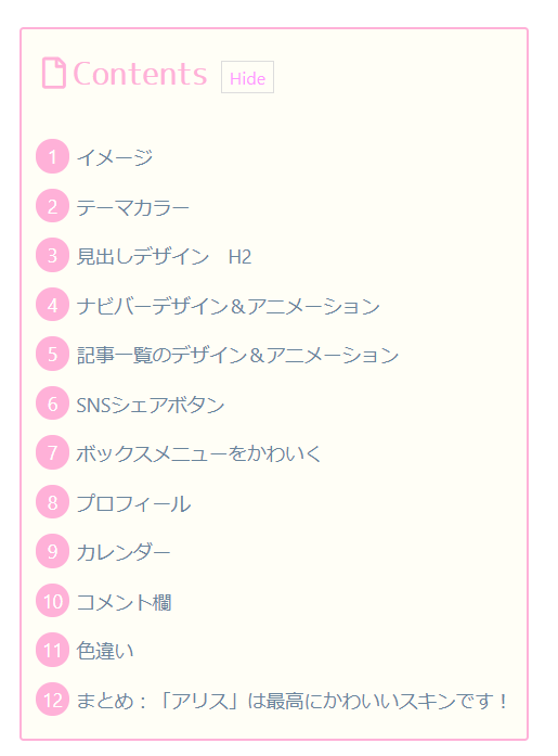 ▼目次やボックスメニューのデザインはピンクでかわいい印象。