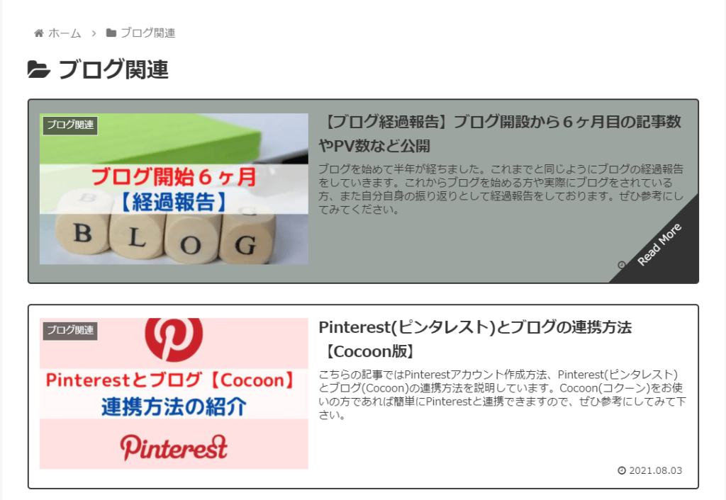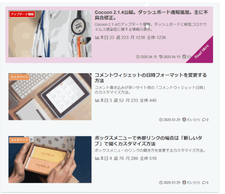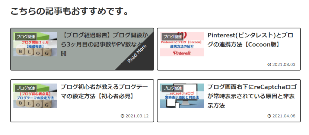 ▼カルーセルや関連記事のリンクにマウスをかざすと色が変化し、右下に「Read More」が表示されます。