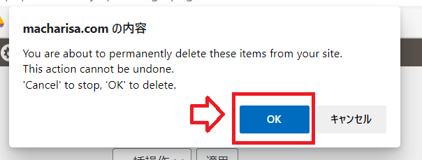 - ②「削除」にタブを合わせ、[適用]をクリックします。