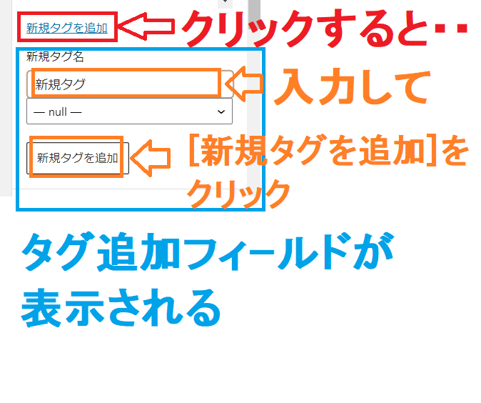 左側の「新規タグを追加」に、追加したいタグ情報を入力していきます。