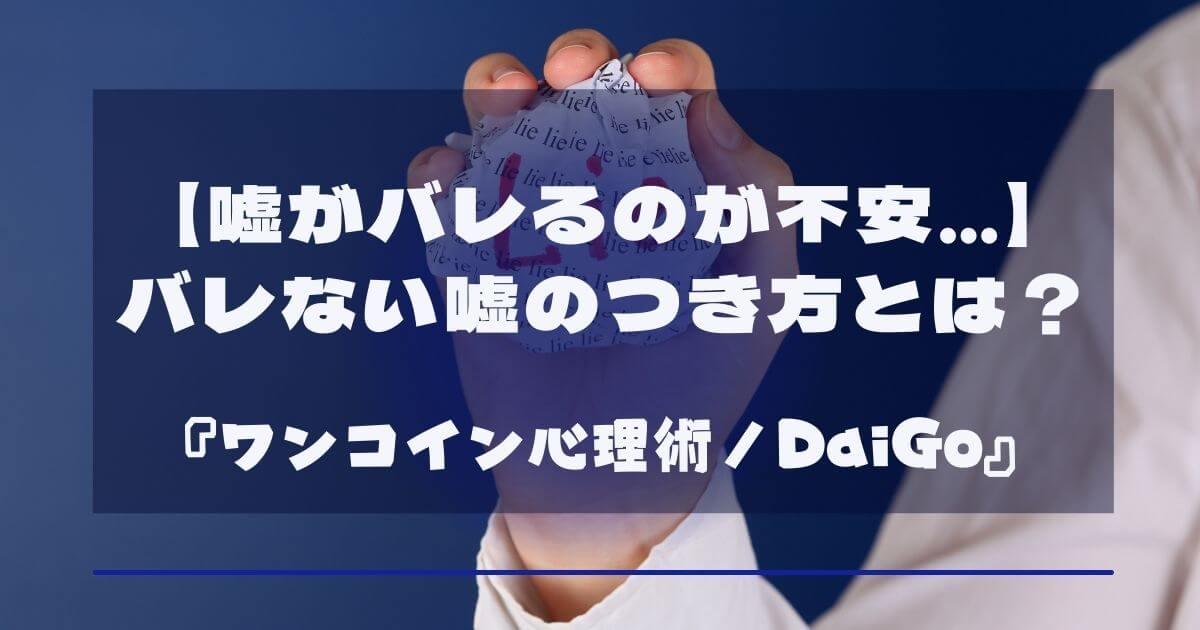 今回は「バレにくい嘘のつき方」について、 著書『ワンコイン心理術 500円で人のこころをつかむ心理学』(メンタリストDaiGo著/PHP文庫)をもとに、解説していきます。