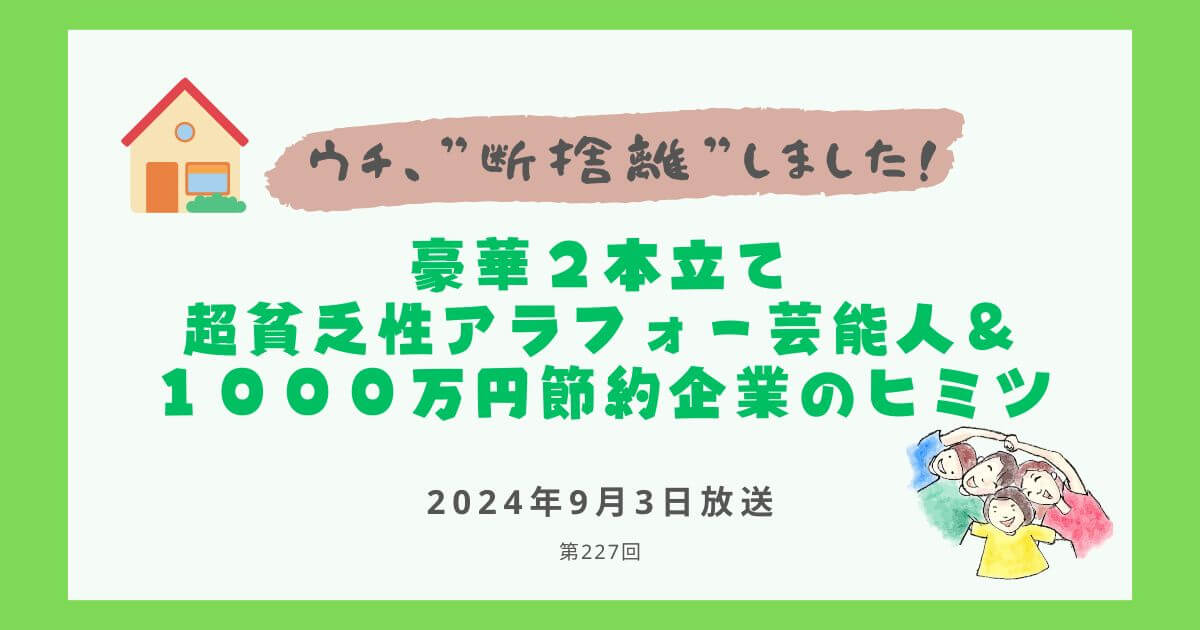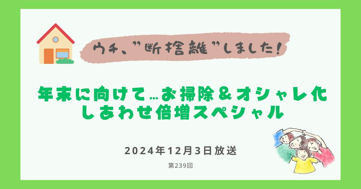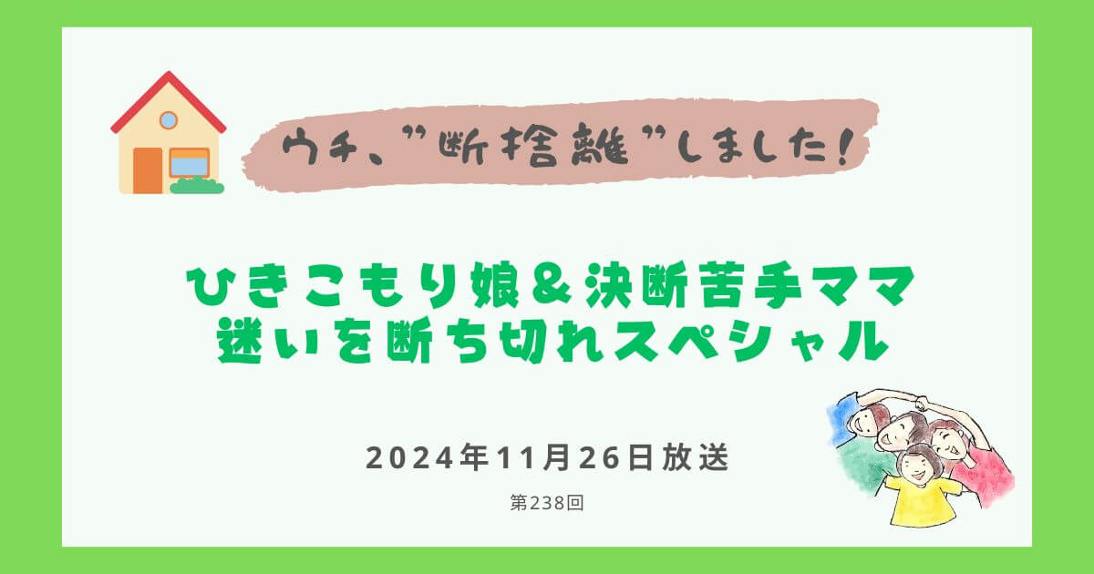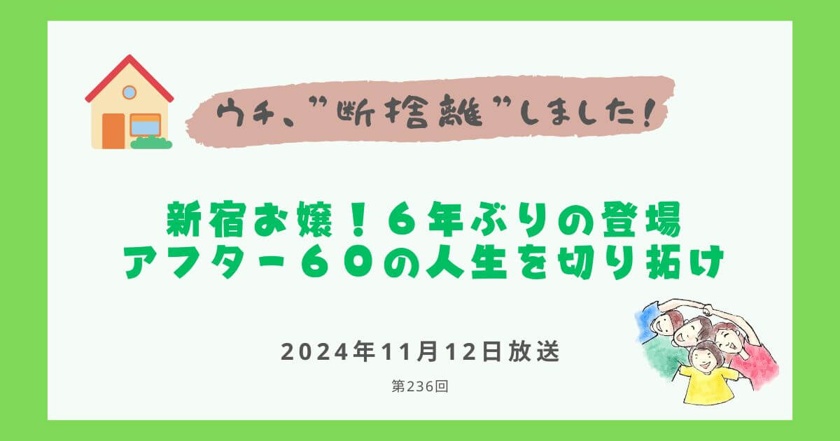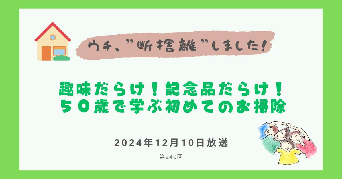 こんにちは、まちゃりさです。本記事では、BS朝日「ウチ、”断捨離”しました!」2025年1月7日放送回(第243回)の内容・感想をまとめます。今回は、ゴミ屋敷寸前な実家の断捨離物語(前編)です。 ↓後...