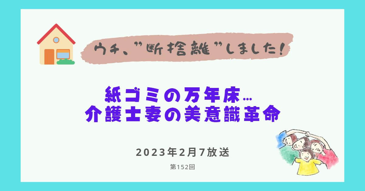 本記事では、BS朝日「ウチ、”断捨離”しました!」2023年2月7日放送回(第152回)の内容・感想をまとめます。